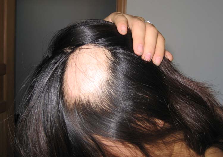 2、不及时治疗可发展全秃或普秃。5%-20%患者刚脱发时为一片为几片斑秃,逐渐扩大并在头皮其它部位陆续发生新的斑秃,融合成大片脱发斑,头发全部脱光,称全秃。少数病情严重的患者,脱 发数月至1年左右后眉毛、胡须、睫毛、腋毛、及阴毛也成片或大部脱落。最重时包括毳毛在内的全身所有毛发均脱光,称为普秃。一时发展成为普秃治疗的疗程会更长一些。斑秃的自愈的可能性较小, 所以希望患者一旦发现患有斑秃,应及时积极的治疗以免病情加重,延误最佳治疗时期。