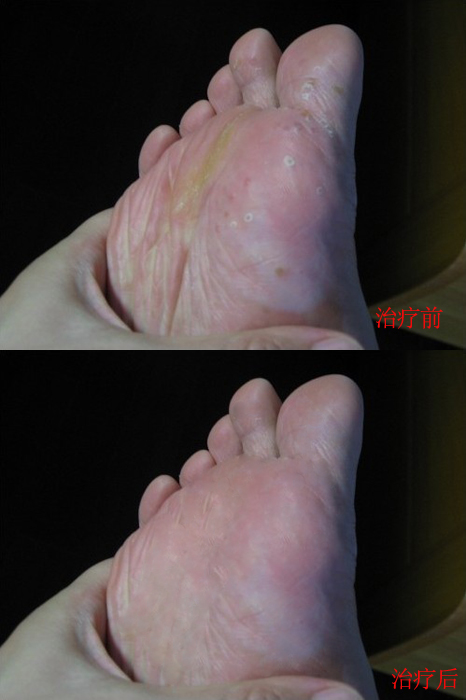 患者资料:冯叶杨,男,22岁,石家庄人,2012年3月的某一天,冯叶杨回家后在洗脚时发现脚特别痒,一看脚大拇指长了个包,就是有点疼,一开始没在意。第二天就变成一个大水泡,于是冯叶杨没有多想,就把水泡挑破了。后来就是总掉皮,用酒精消毒后,撒上结晶粉,可也是止不住。没过几天,自己的另一只脚也出现了类似的情况,这让冯叶杨很是担心,以为自己患有了很严重的皮肤病,于是来到了石家庄明德中医院皮肤病医院。