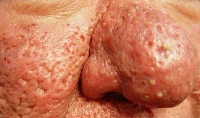 酒糟鼻如果长期没有进行及时的治疗,就会产生鼻赘而进入到鼻赘期,鼻赘期的病程迁延日久,鼻子的结缔组织增生,皮脂腺异常的增大,导致鼻尖部位肥大,形成大小不一的结节状隆起,表面凹凸不平,挤压能够出现白色的粘稠皮脂分泌溢出,丘疹、脓疱此起彼伏,毛细血管扩张明显。所以需要及时选择正规医院进行对症治疗。