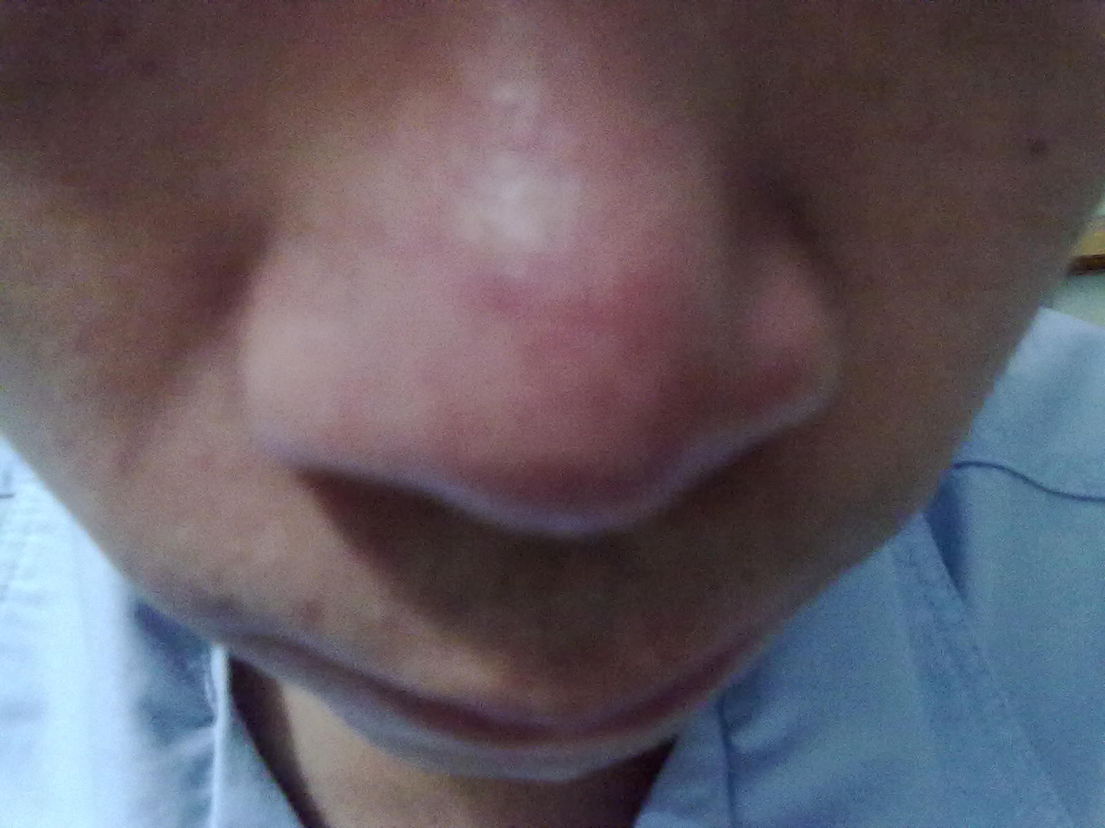 2、初起以鼻为中心的颜面中部发红斑,尤以进食辛辣、热食或精神紧张后更为明显。初为暂时,日久不退,伴有毛细血管扩张呈丝网状,形如树技,以鼻尖鼻翼处最为明显。