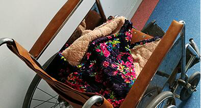住院时,张女士双脚肿痛不能下床走路,护理部为她准备了一台轮椅,这几天做治疗她都是坐轮椅去的。不光身上头上皮损鳞片斑斑,连手上脚上的指甲也受到了银屑病的牵累,她的手指甲和脚趾甲都颜色发黑,甲板增厚,前端翘起……这两个小伙伴剪起来还真是费了好大劲儿!