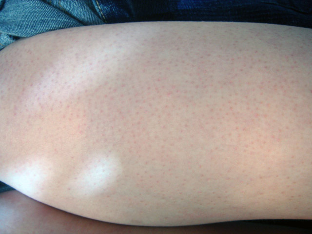 毛周角化病常好发于患者的双侧面颊部,上臂、双侧大腿,有些留有暗红色色素斑,有时严重者泛发背部等皮脂丰富区。患处皮肤可出现小丘疹,红斑。那么,治疗毛周角化需要注意什么呢?