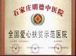 石家庄明德中医院是一所经河北省卫生厅批准成立,集医疗、预防、科研、教学、保健、康复为一体的综合性医院,同时具有中国健康产业影响力品牌医院、河北牛皮癣定点医院,河北牛皮癣治疗实验基地。