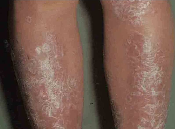银屑病初期症状(3):银屑病的早期症状可发生在身体的任何部位,但以头皮、四肢伸侧等最为常见,皮损可表现为点滴状、钱币状、地图状、回状或疠状等多种形态。