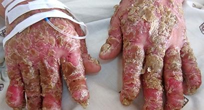 关节型牛皮癣病发部位是关节部位,它导致关节损伤最后行动不便,严重的会变成残疾,临床中大部分患者先出现银屑病皮损,后出现关节病变症状,关节红肿疼痛,关节变形,产生功能障碍。 关节型牛皮癣还会产生很多的并发症,如内脏损害、风湿性心脏病、溃疡性结肠炎、风湿性心脏病等危害。关节型牛皮癣除有牛皮癣本身的危害外,还发生类风湿性关节炎症状。