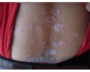 这些牛皮癣(银屑病)患者所产生的毁容现象,一般都是使用含有激素的外用药膏、药水,或者使用偏方后引起的。其中头部牛皮癣(银屑病)症状表现的最为明显,也是这些症状中最容易导致毁容的类型,一般患者在发生脸部或者头部牛皮癣(银屑病)时,急于把症状祛除,因而去使用了药膏、药水等外用药,但是这些药物中含有激素成份,激素一个较明显的副作用就是会使毛发加粗加重。患者若是长期使用药膏涂抹,则可能使汗毛加粗加重变黑,看起来和胡须越来越像。有些患者在使用这些激素类药物之后加重了病情诱发严重型牛皮癣(银屑病),如:红皮型牛皮癣(银屑病),这时候全身布满红斑很是吓人。也可能导致患者诱发脓包型牛皮癣(银屑病),这时候患者脸上也会出现一个个脓包看起来也相当的可怕,因此患者在治疗时要慎重选择药物。