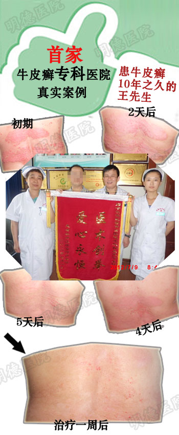 第一、寻常型银屑病基本损害是皮损为红疹或斑丘疹,由粟粒大至绿豆大,上覆有疏松的银白色鳞屑,即使是貌似红色表面大的皮疹,用指甲搔刮表面后,也会出现多层银白色的鳞屑,这是最基本的特征。