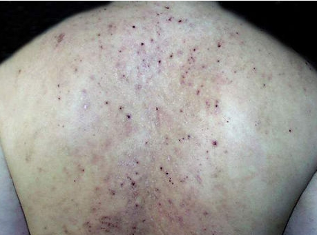 患者症状:皮损处被覆油腻鳞屑或痂皮,出现渗出、结痂和糜烂并呈湿疹样表现,伴有不同程度的瘙痒。