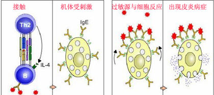 2. 外在因素。包括饮食、吸入物、气候、接触过敏物等。其中海鲜、辛辣食品、酒、吸入花粉、尘螨、寒冷天气、接触化学物品、化妆品、肥皂、洗涤剂等是过敏性皮炎最常见的诱因。