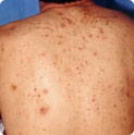 小刘今年刚二十四多岁,从湖南来石家庄打工,其间认识了一位女孩,在两人相处过程中,各方面都很投缘,惟有一点让女孩不满意,就是小刘脸上长满了红色的小丘疹型青春痘,高高低低、凸凹不平,有的还伴有小脓泡。为了搏得女孩的欢心,当务之急是解决自己的“面子”问题。小刘费尽心机,跑了不少医院,治了很长时间一点也没有见效。
