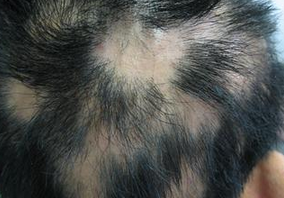 这种现象是进展期的征象。脱发现象继续增多,每片亦扩展,可互相融合形成不规则形。如继续进展可以全秃。严重者眉毛、睫毛、腋毛、阴毛和全身毳毛也都脱落,即为普秃。